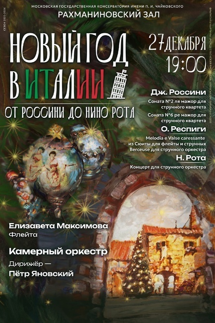 27 декабря 2025 г., в предновогоднюю волшебную зимнюю субботу, двери Рахманиновского зала Московской консерватории гостеприимно распахнулись ровно в 19 часов. Здесь, среди живописных интерьеров, состоялась особая программа, посвящённая итальянскому искусству, наполненная теплом, светом и глубокими эмоциями.