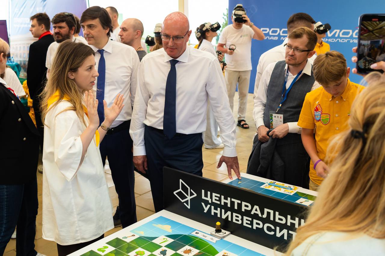 На IT-фестивале школьники познакомились с разработкой мобильных приложений, использованием искусственного интеллекта и послушали лекции от экспертов бизнеса, науки и космической отрасли. Вице-премьеру Дмитрию Чернышенко и министру просвещения Сергею Кравцову представили образовательные инициативы по подготовке кадров нового поколения, включая образовательную модель Центрального университета, сочетающую фундаментальные знания и опыт индустрии.