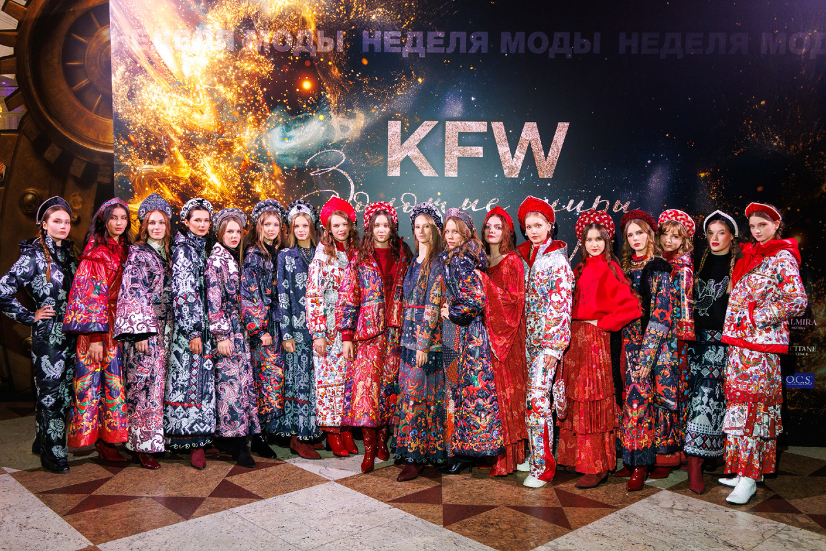 Показы открыло грандиозное шоу от продюсерского центра «Грани», в котором приняли участие более 100 дизайнеров. Масштабную коллекцию подготовили воспитанники Школы Европейского дефиле и их родители под руководством главного режиссера KFW Валерия Сорокового.